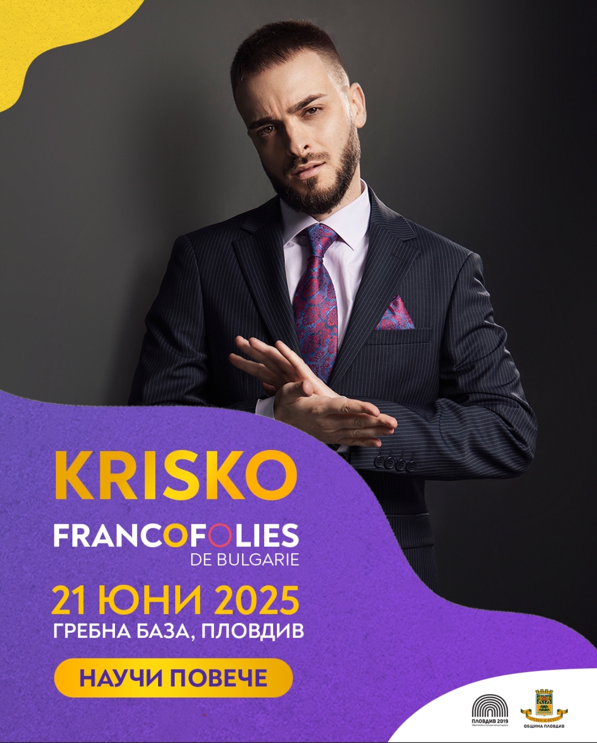 Фестивалът „Франкофоли“ ще представи своето 11-о издание на 20 и 21 юни на Гребната база в Пловдив с мащабна програма, която ще събере изпълнители и почитатели на българската и френската музика. Събитието за първи път кани Криско, който ще се присъедини в съботната вечер към програмата на фестивала заедно с Лили Иванова и обичаната френска изпълнителка Zaz.