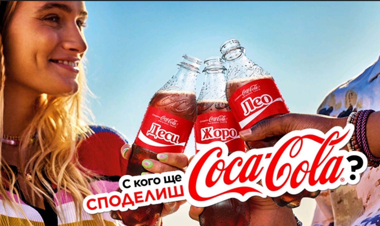 Над 150 уникални имена и прякори ще освежат етикета на иконичната напитка в България. Алекс, Тони, Ники, Вики, Пепи, Гери, Дани, Хриси и още много други ще разпознаят имената си върху опаковките на Coca-Cola. Изборът на най-популярните имена в България е на базата на официални регистри и демографски данни. Използвани са още технологии като изкуствен интелект и анализ на социалните мрежи, за да бъдат уловени новите тенденции, прякори и жаргонни обръщения, които се използват най-често от българите. Сред тях са Шегаджията, Тайфата, Победителя, Мацката, Шефа, Брата, Семейството, Приятелите, Отбора и други.