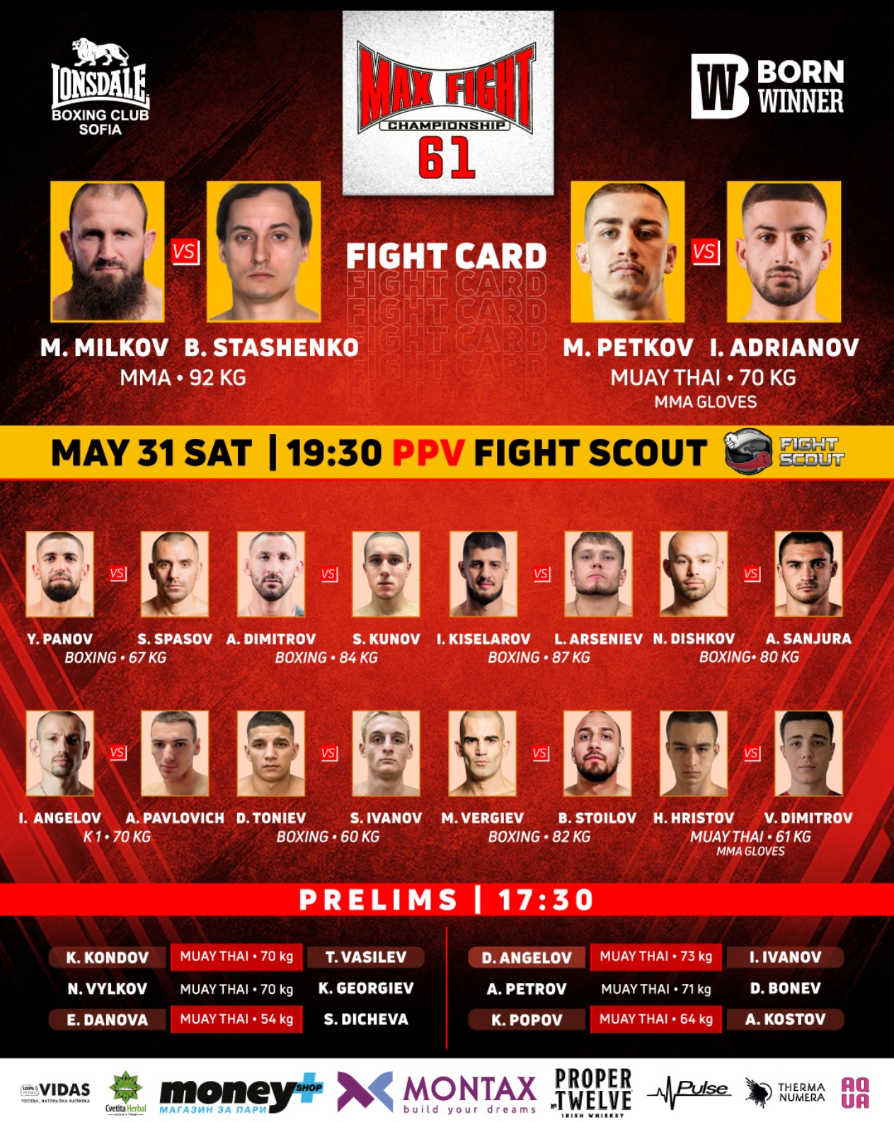 - Гала вечерта MAX FIGHT 61 започва в 19:30 часа