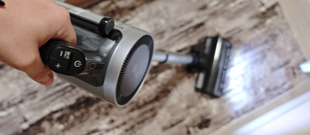 Работи сравнително тихо, с ниво на шум около 84 dB, което е по-ниско от много други безжични прахосмукачки. Това я прави подходяща за използване в домове с малки деца или чувствителни към шум домашни любимци.